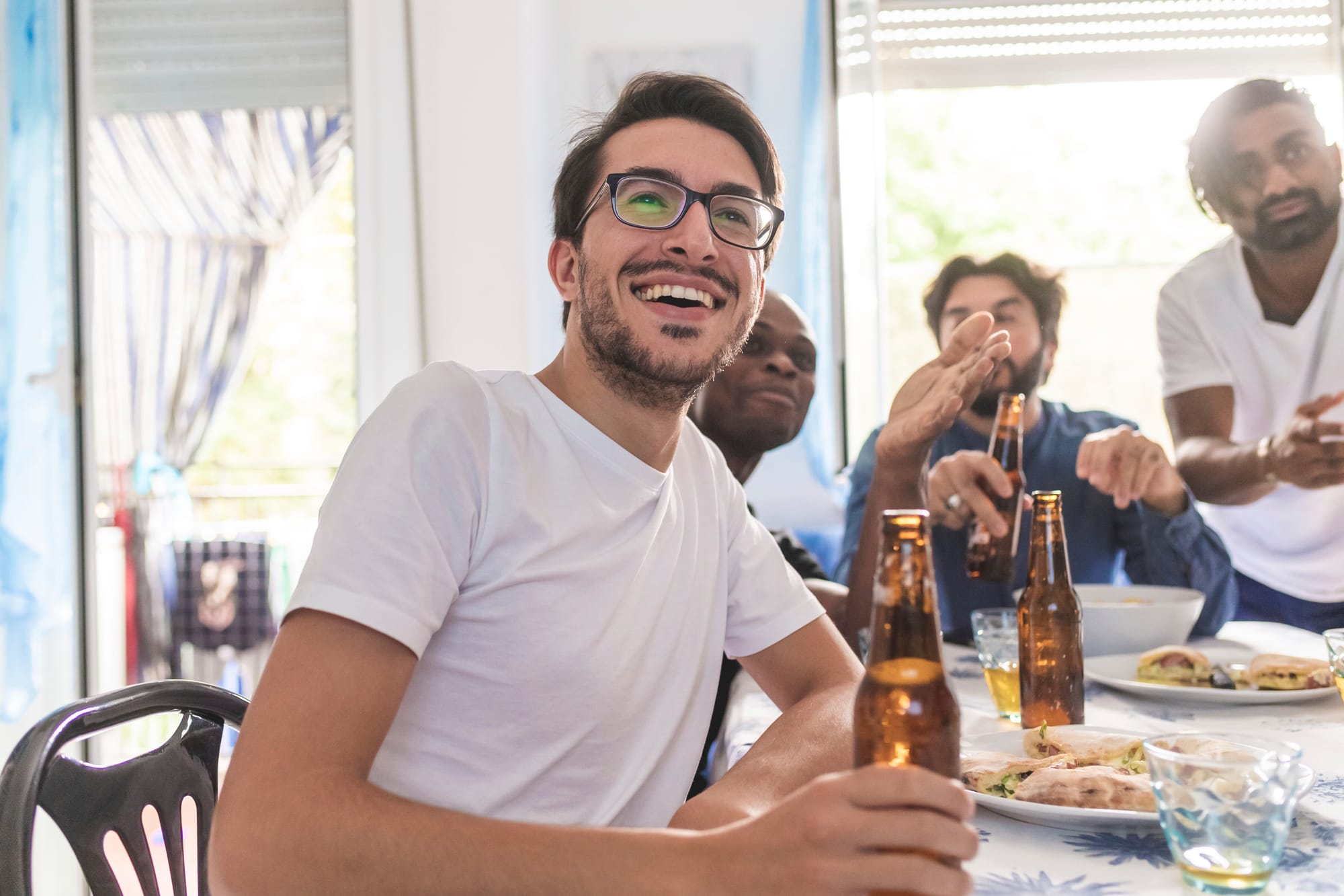 Why it works: You get your only full-group frame with high energy and genuine excitement.
